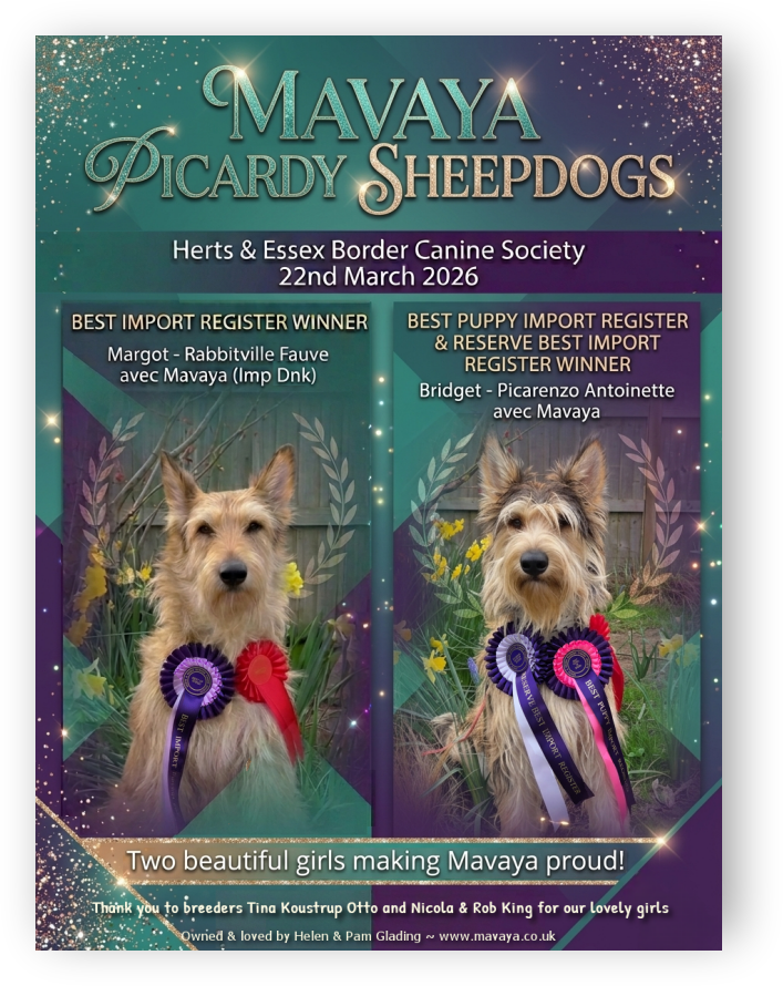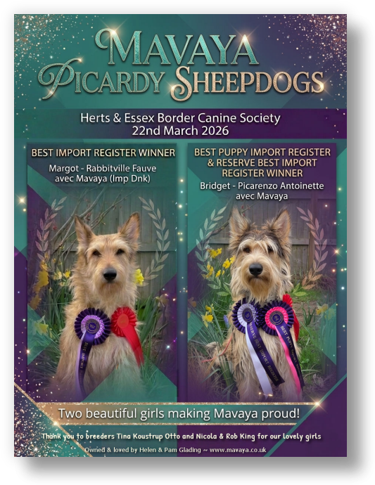 NEWS Margot wins Best Import Register + Bridget wins Best Import Register Puppy and Reserve Best Import at Herts + Essex